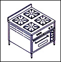 Burner Cooking Range with oven, pilot, spillage